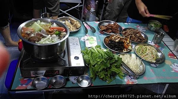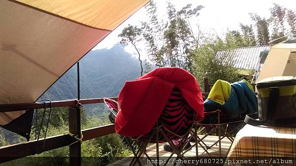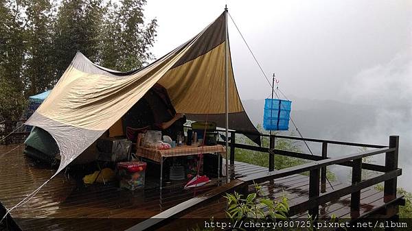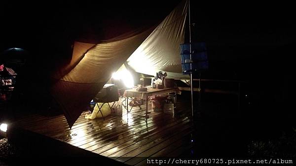 傍晚下起雨來,怕天黑山路難行,於是告別來探班的露友,準備吃晚餐去![]()